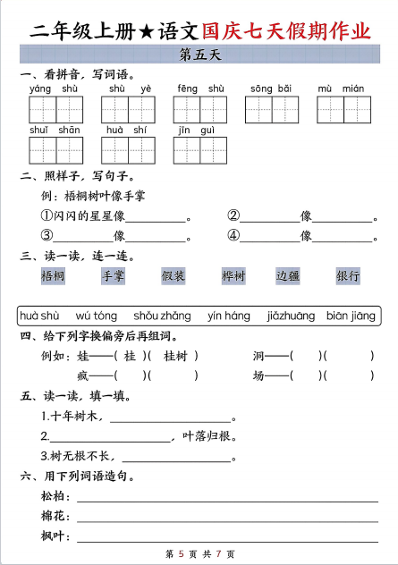 (2)弯弯的月亮像小船。