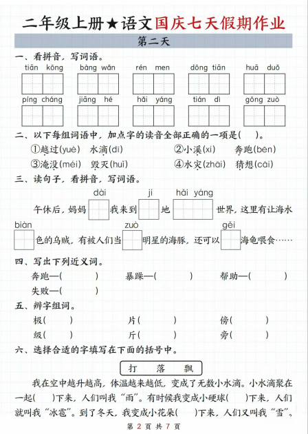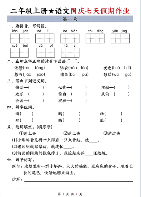 池塘选② 脑袋选① 灰色选② 教书选① 捕鱼选① 鼓动选②