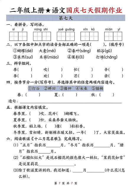 四季 吹拂 帮忙 辛苦 李子 欢乐 芒果 亲切