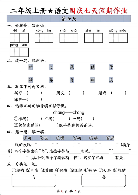 “①”“③”“④”“⑤”四个字都含有“鸟”,这些字都与“鸟”有关;“②”“③”“⑥”三个字都含有“隹”,这些字也与“鸟”有关。